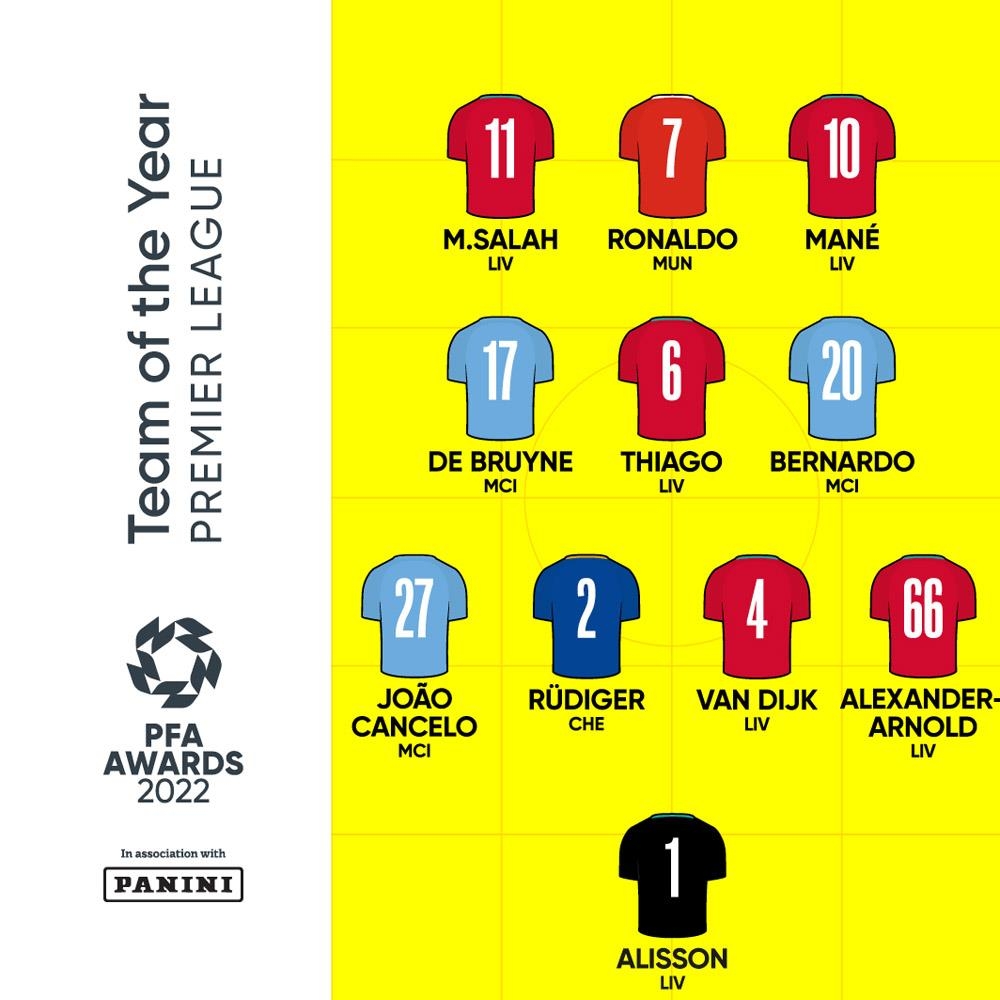 이 매체는 '리버풀이 우승 후보로 재등장한 것이 결정적 영향을 끼친 것 같다'고 분석하면서도 '호날두는 팀이 리그 6위로 시즌을 마쳤음에도 올해의 팀에 뽑혔다'고 덧붙였다. 호날두는 맨유로 복귀한 2021-2022시즌 프리미어리그에서 18골을 기록했다.