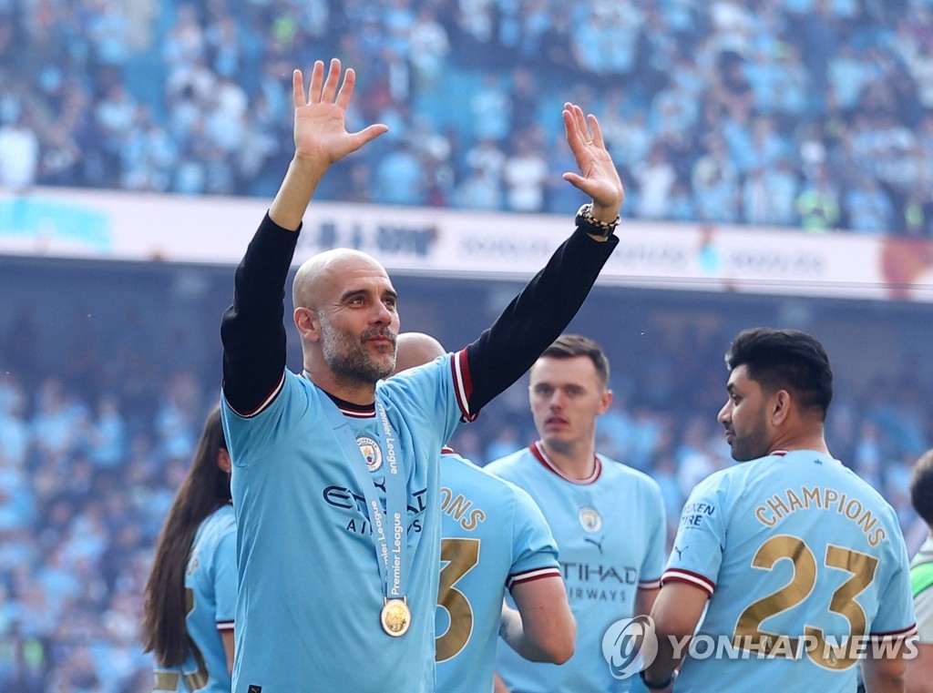 | ▲ 홈팬들의 환호에 답례하는 맨시티 페프 과르디올라 감독 [로이터=연합뉴스] |