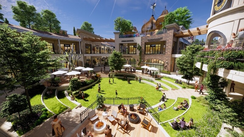 야외형 아웃렛의 강점을 극대화하기 위해 공용공간에는 녹지공간과 휴게공간을 50% 이상 확보했다. 또 유럽의 관광명소를 모티브로 조성한 특화 공간도 마련했다.