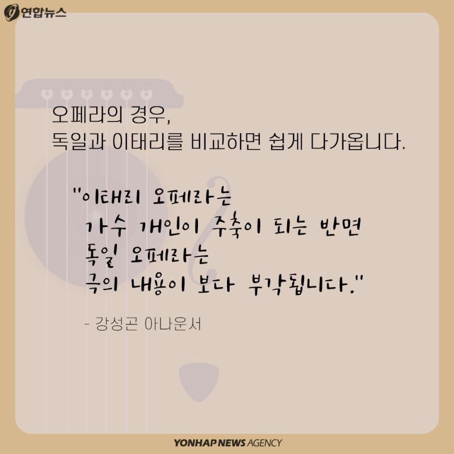 "이탈리아 오페라는 가수 개인이 주축이 되지만 독일 오페라는 극의 내용이 보다 부각됩니다."