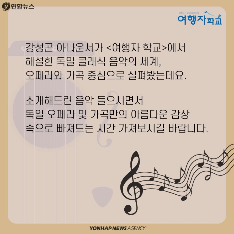 강성곤 아나운서가 '여행자 학교'에서 설명한 독일 클래식 음악의 세계 강연은 오페라와 가곡 중심으로 살펴봤는데요.