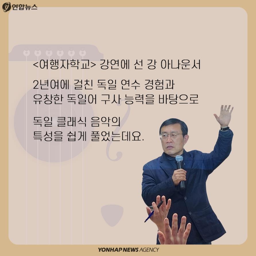 '여행자학교' 강연에 선 강 아나운서는 2년여에 걸친 독일 연수 경험과 유창한 독일어 구사 능력을 바탕으로 독일 클래식 음악의 특성을 쉽게 풀었는데요.