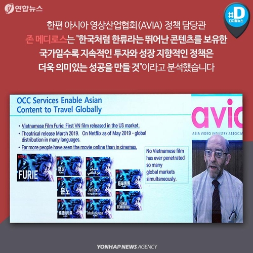 한편 아시아 영상산업협회(AVIA) 정책 담당관 존 메디로스는 "한국처럼 한류라는 뛰어난 콘텐츠를 보유한 국가일수록 지속적인 투자와 성장 지향적인 정책은 더욱 의미있는 성공을 만들 것"이라고 분석했습니다.
