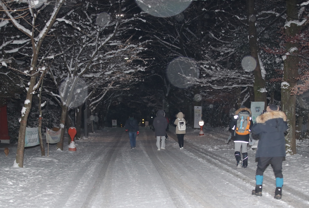 | ▲ 눈 맞으며 새해 첫 무등산 등산 (광주=연합뉴스) 천정인 기자 = 1일 오전 광주 동구 무등산 국립공원 증심사 입구에서 시민들이 출입통제가 풀린 무등산을 오르고 있다. 무등산국립공원은 신종 코로나바이러스 감염증(코로나19) 확산을 막기 위해 이날 오전 7시까지 등산객 출입을 금지했다. 2021.1.1 iny@yna.co.kr |