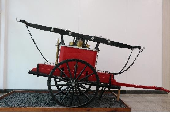 완용펌프는 수레에 싣고 인력으로 이동해 수동으로 소화수를 뿌리는 장비로, 우리나라 소방기구 역사 초기 상황을 보여주는 유물이다.
