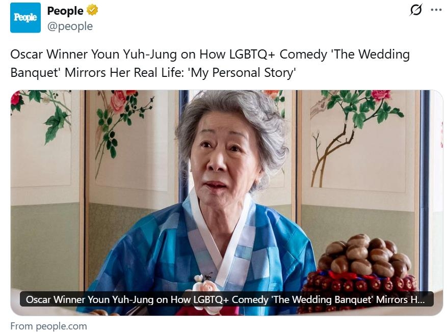 | ▲ 윤여정 인터뷰 내용 전하는 미국 피플지 엑스 게시물 [피플(People) X 게시물 캡처. 재판매 및 DB 금지] |