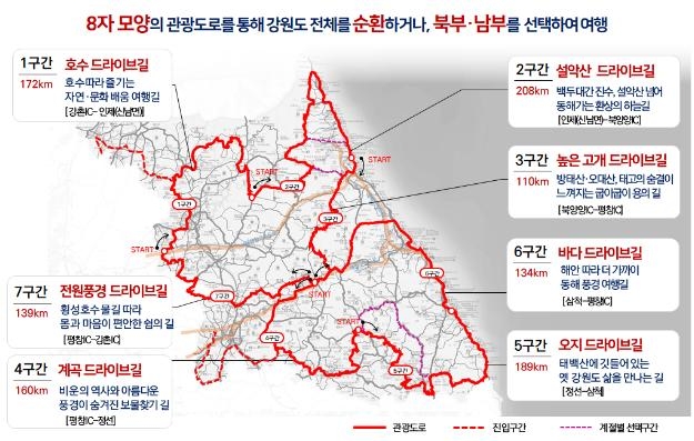 국내 최초 관광도로 조성…강원 구석구석을 '8자 형태'로 연결