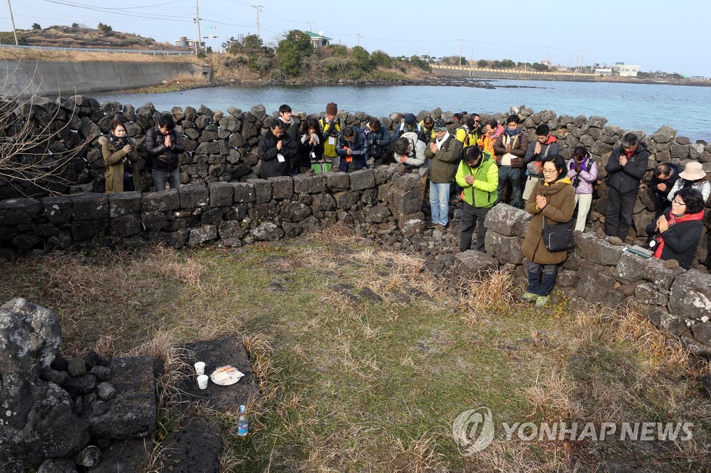 | ▲ 제주올레길 위의 전통 체험 (제주=연합뉴스) '제주올레 길 위의 제주 전통문화 체험' 행사가 열린 제주시 구좌읍 김녕마을에서 한국과 중국, 일본 트레일 단체 관계자들이 제주전통 무속 신당(神堂)을 답사한 뒤 기도를 올리는 체험을 하고 있다. [연합뉴스 자료사진] |