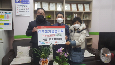인천 계양구 작전1동통장자율회(회장 김동수)는 8일 작전1동행정복지센터(동장 김낙균)를 찾아 어려운 이웃들이 명절을 따뜻하게 보내는 데에 사용해 달라며 온누리상품권(55만 원)을 전달했다.