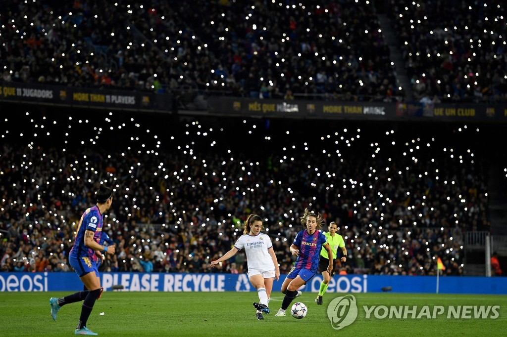 (서울=연합뉴스) 안홍석 기자 = 스페인 축구 명문 FC바르셀로나의 홈 구장 캄노우에 '여자 축구' 경기를 보기 위해 역대 가장 많은 9만여명의 관중이 몰려들었다. 여자 축구에 새 시대가 열리고 있다는 평가가 나온다.