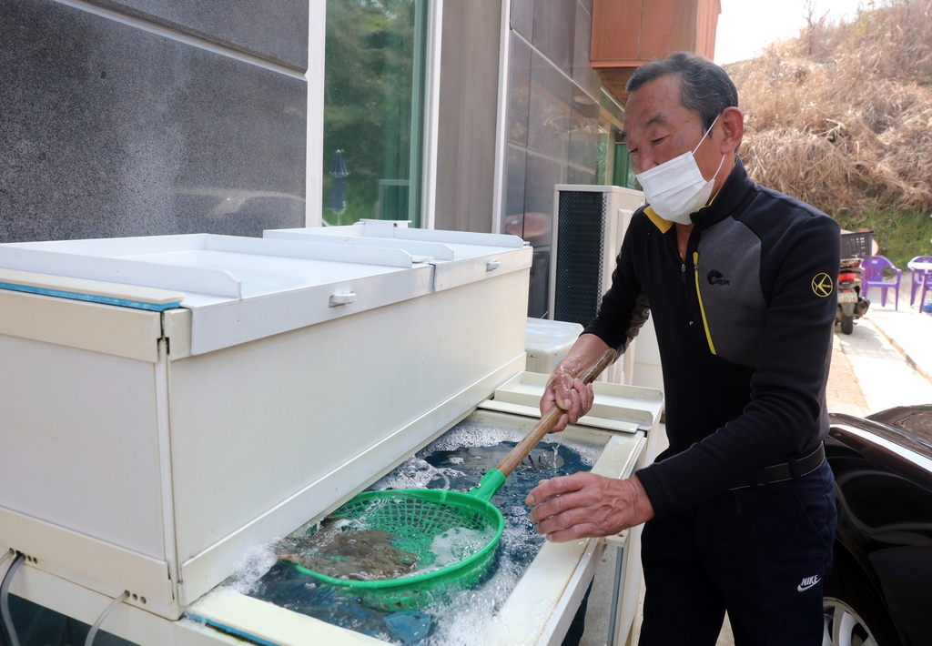| ▲ 도다리 꺼내는 이종일 사장 [촬영 형민우] |
