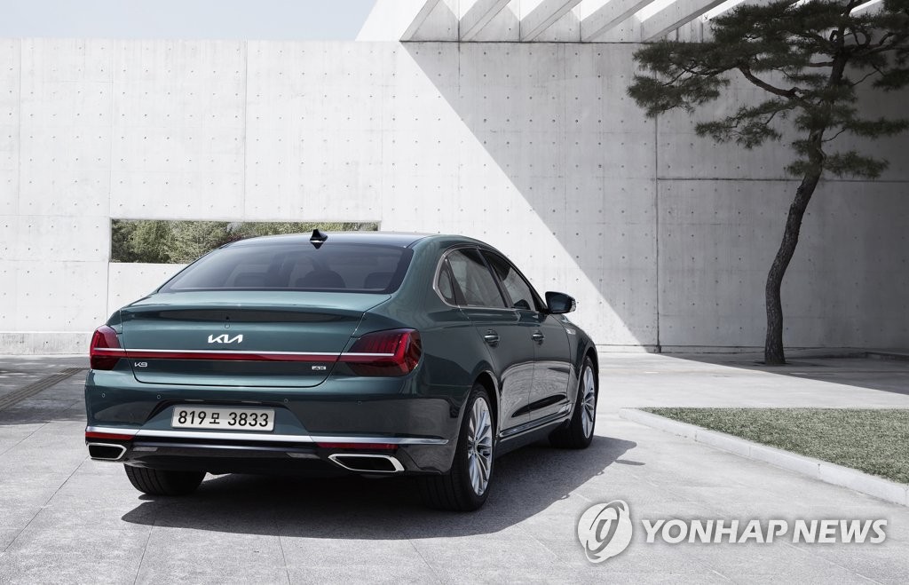 (서울=연합뉴스) 장하나 기자 = 기아[000270]가 대형 세단 K9의 상품성 개선 모델 '더 뉴 K9'의 외장 디자인을 17일 선보였다.