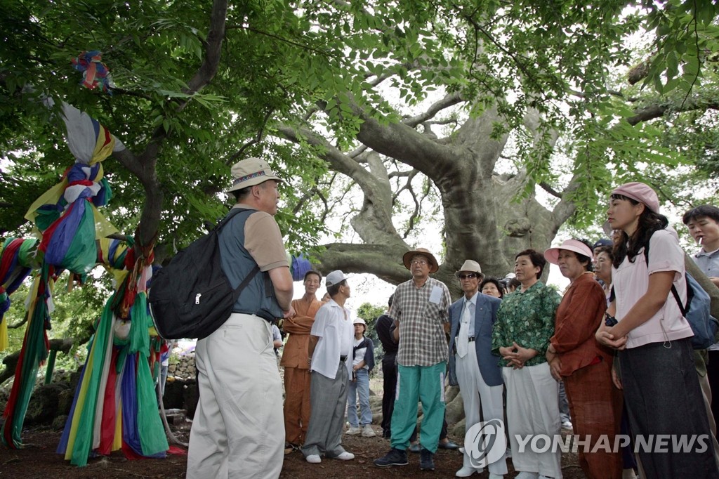 | ▲ 송당마을 신화축제 개막 (제주=연합뉴스) 문화관광부 지정 문화역사마을인 제주도 북제주군 구좌읍 송당리에서 '1만8천신들의 본향 불휘공 송당마을 신화축제'가 개막된 가운데 송당마을 주민들이 신당 기행을 하고 있다. [연합뉴스 자료사진] |