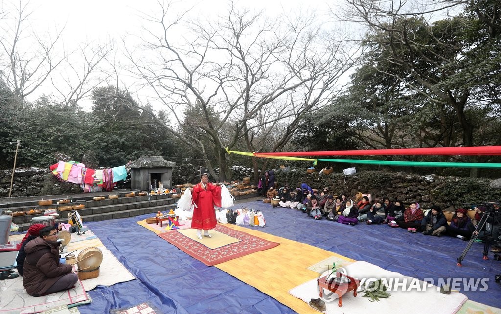 | ▲ 세계무형유산 영등굿 "영등할망 잘 갑서" (제주=연합뉴스) 지난 2016년 3월 22일 제주시 사라봉 칠머리당에서 제주 칠머리당 영등굿의 영등송별대제가 봉행 되고 있다. 이 굿은 해마다 '영등달'인 음력 2월 초하룻날 제주에 찾아왔다가 열나흗날 떠나는 '영등할망'을 보내는 무속 제례다. [연합뉴스 자료사진] |