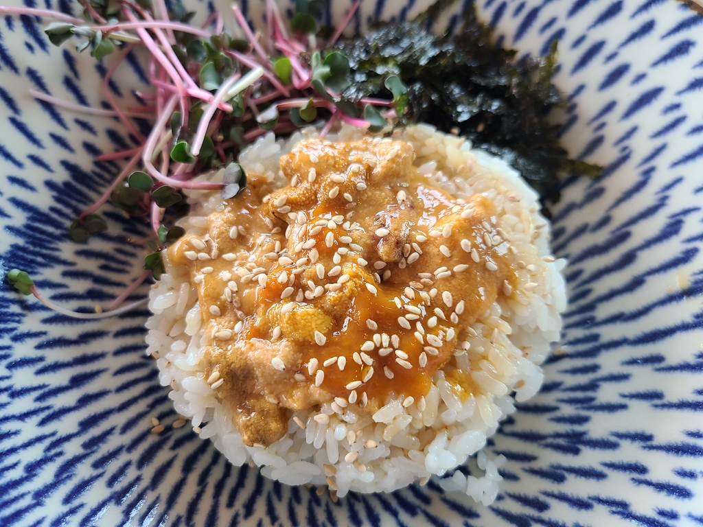 성게알은 입에 들어오자마자 녹아내리는 듯 했고, 마치 푸딩처럼 부드럽게 목으로 넘어갔다.