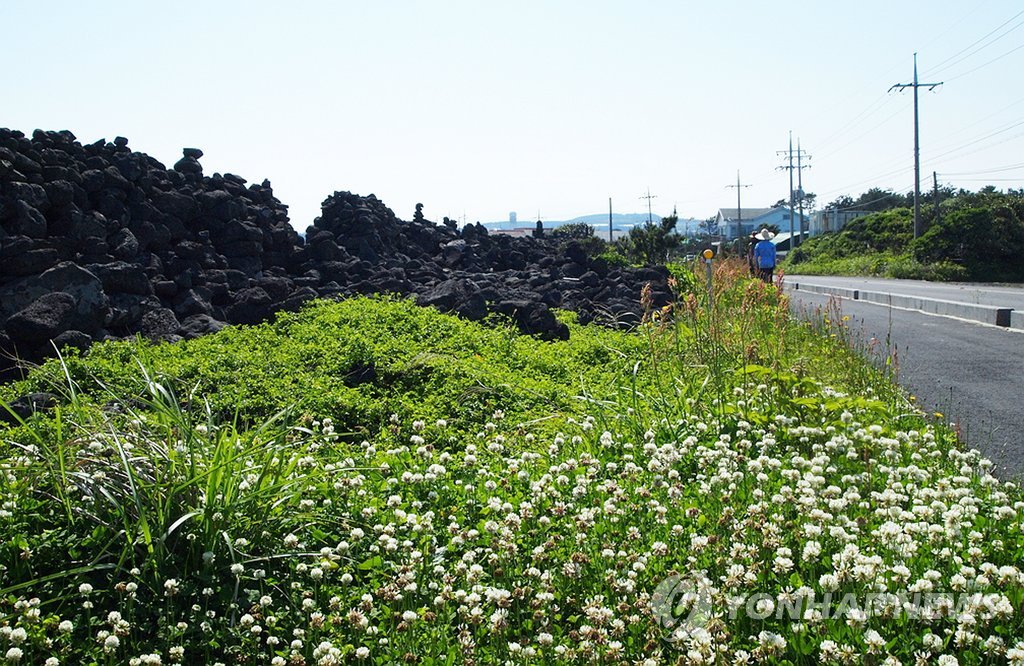 | ▲ 제주 환해장성 (서귀포=연합뉴스) 배를 타고 들어오는 외적의 침입을 막기 위해 제주에서는 해안선을 따라가며 성을 쌓았는데 이를 환해장성이라 한다. '탐라지'의 기록에 따르면 원종 11년(1270) 진도에 있던 삼별초가 제주도로 들어오려 하자 이를 막기 위해 김수, 고여림이 군사들과 제주도민들을 동원하여 성을 쌓았다고 한다. [연합뉴스 자료사진] |