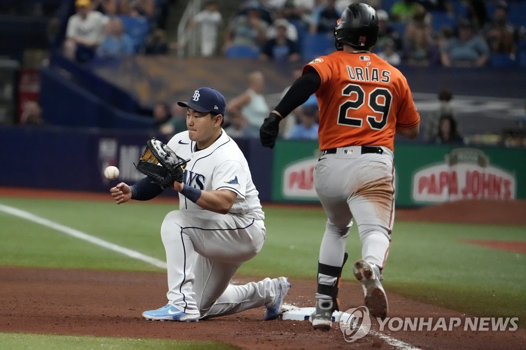 최지만은 17일(한국시간) 미국 플로리다주 세인트피터즈버그 트로피카나 필드에서 열린 2022 미국프로야구 메이저리그(MLB) 볼티모어 오리올스와의 홈경기에 4번 타자 1루수로 출전해 5타수 1안타를 치고 타점 1개를 올렸다.