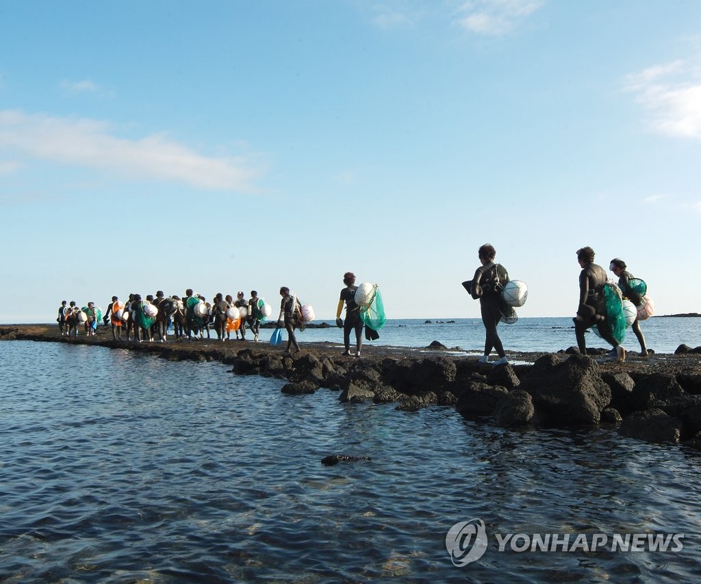 ▲ 물질 나가는 인류무형문화유산 제주 해녀들 (제주=연합뉴스) 제주시 구좌읍 월정리 해안에서 해녀들이 물에 들어가려고 준비하고 있다. [연합뉴스 자료사진]