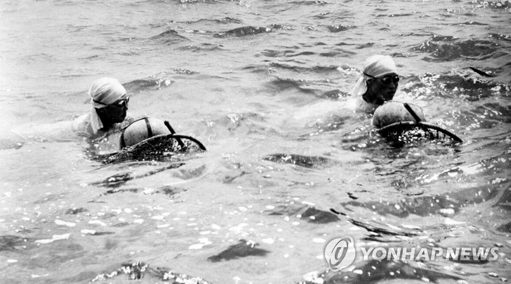 ▲ 1957년 제주도 해녀 (서울=연합뉴스) 사진은 1957년 제주도 해녀가 입수한 모습. 2017.12.11 [국가기록원 제공=연합뉴스] photo@yna.co.kr
