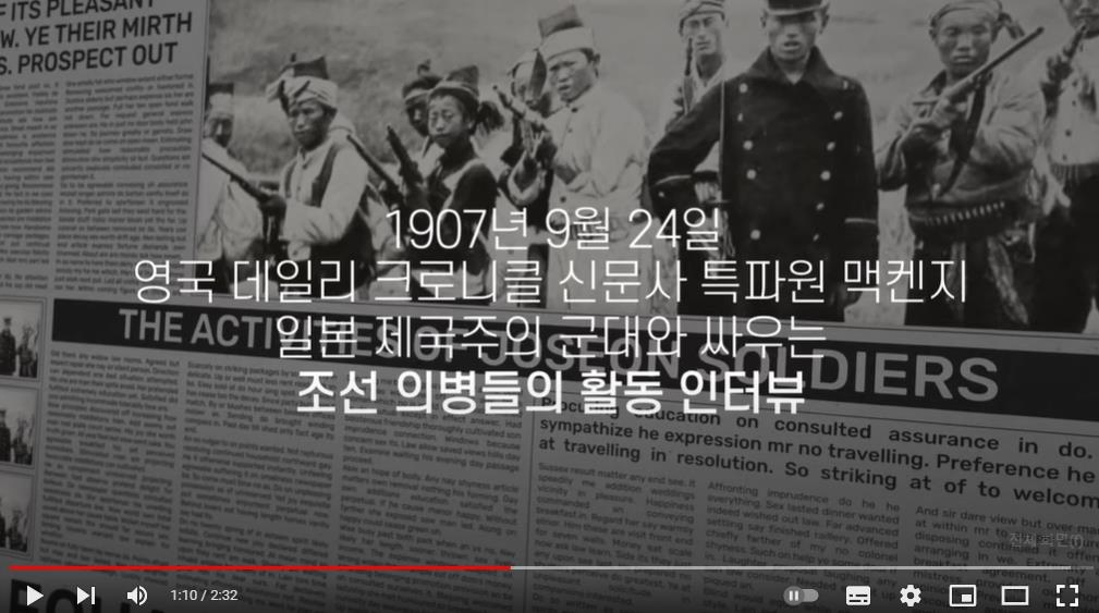 | ▲ 영국의 '데일리 크로니클' 맥켄지 특파원의 의병 인터뷰 기사 [유튜브 캡처] |