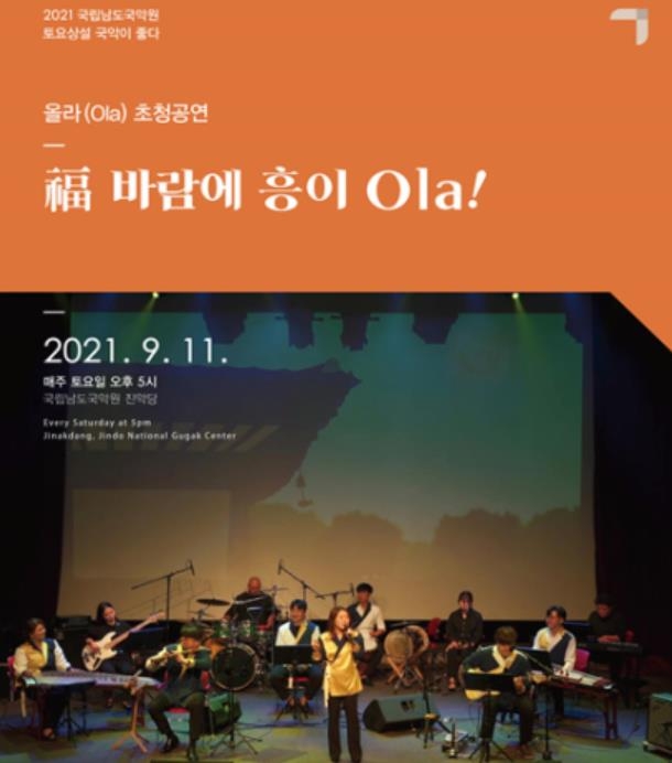 (진도=연합뉴스) 조근영 기자 = 국립남도국악원은 11일 오후 5시 차세대 퓨전 그룹 올라팀을 초청해 토요상설 공연을 연다.