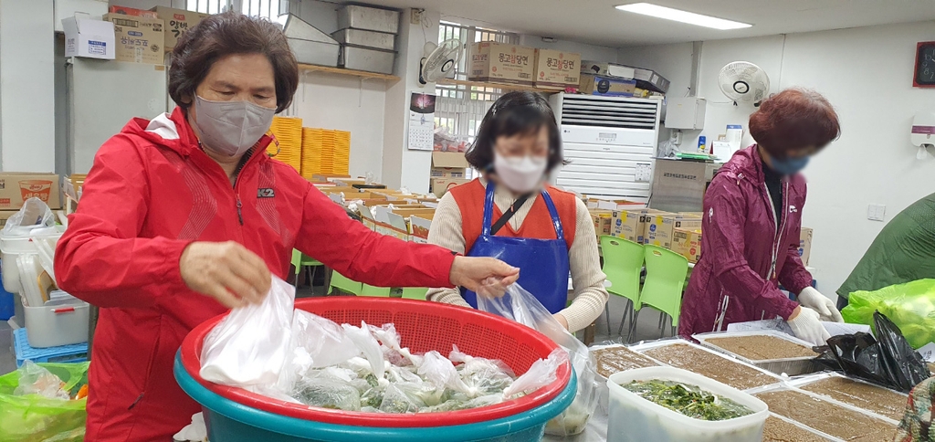 | ▲ 취약계층에 전달할 반찬 준비하는 김인순씨(왼쪽) [김씨 제공. 재판매 및 DB 금지] |
