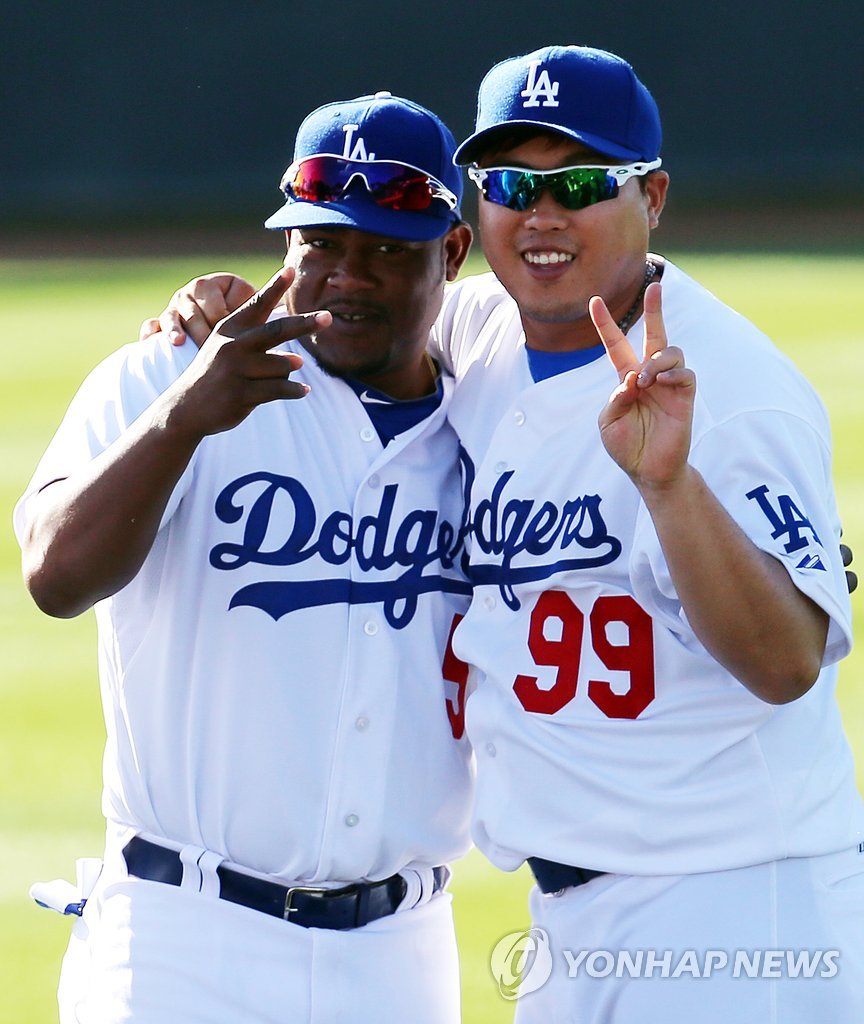 | ▲ 2014년 다저스에서 함께 뛴 류현진(오른쪽)과 후안 우리베 [연합뉴스 자료사진] |