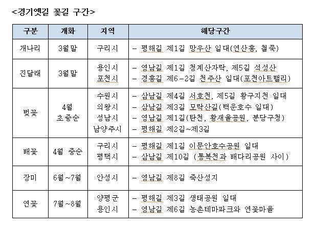 '꽃과 만나는 도보여행'…경기옛길 '아름다운 꽃길 12구간' 선정