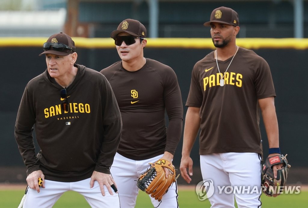 | ▲ 김하성-보하르츠, 전 KIA 감독 윌리엄스 코치와 함께 (피오리아[미국 애리조나주]=연합뉴스) 홍해인 기자 = 21일(현지시간) 미국 애리조나주 피오리아 스포츠 콤플렉스에서 열린 미국 메이저리그(MLB) 샌디에이고 파드리스의 스프링 캠프 훈련. 내야수 김하성과 2023 WBC 네덜란드 대표팀이자 소속팀 유격수인 산더르 보하르츠가 전 KBO리그 KIA 타이거즈 감독을 역임한 맷 윌리엄스 코치(왼쪽)와 함께 내야 수비 훈련을 펼치고 있다. 2023.2.22 hihong@yna.co.kr |