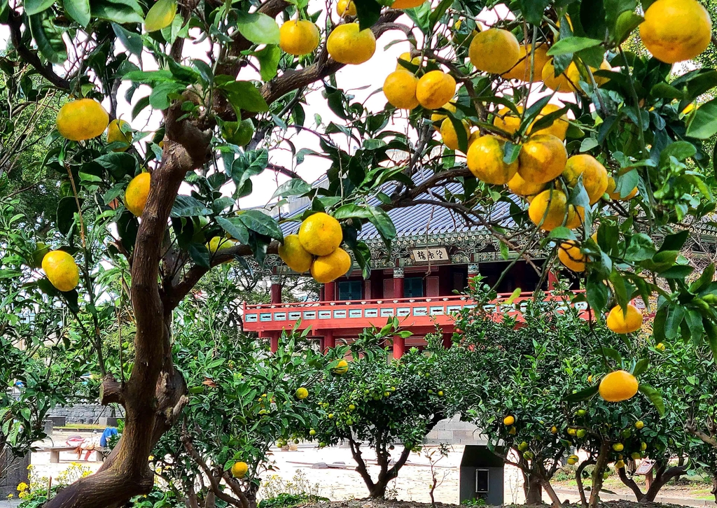 귤나무마다 노랗게 또는 붉게 익은 감귤은 마치 단풍이 물든 듯 따스하면서도 풍요롭다.
