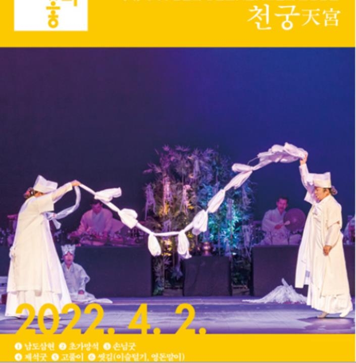 이번 공연 '천궁'은 남도삼현-초가망석-손님굿-제석굿-고풀이-씻김(이슬털기, 영돈말이)-길닦음 순으로 진행될 예정이다.