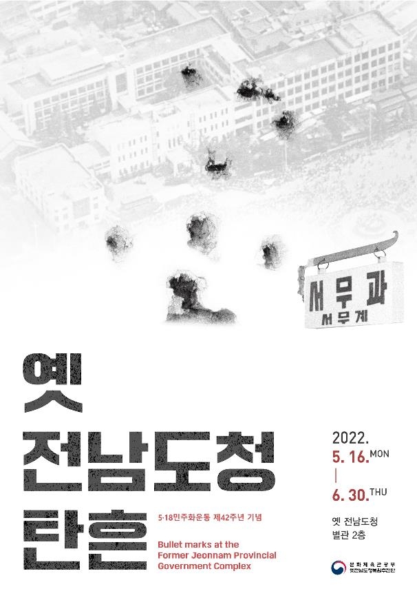 (서울=연합뉴스) 이은정 기자 = 문화체육관광부 옛전남도청복원추진단은 5·18 민주화운동 제42주년을 맞아 16일부터 6월 30일까지 민주화운동 현장인 옛전남도청에서 특별전을 개최한다고 15일 밝혔다.