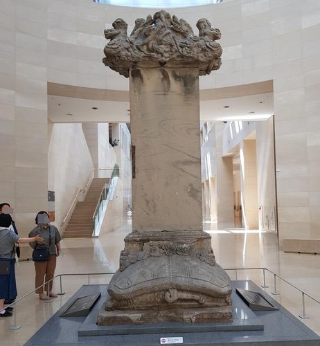 (제천=연합뉴스) 권정상 기자 = 국립중앙박물관 중앙 로비에 우뚝 서 있는 월광사지 원랑선사탑비가 비록 복제품 형태이긴 하지만 고향인 충북 제천에 귀환한다.