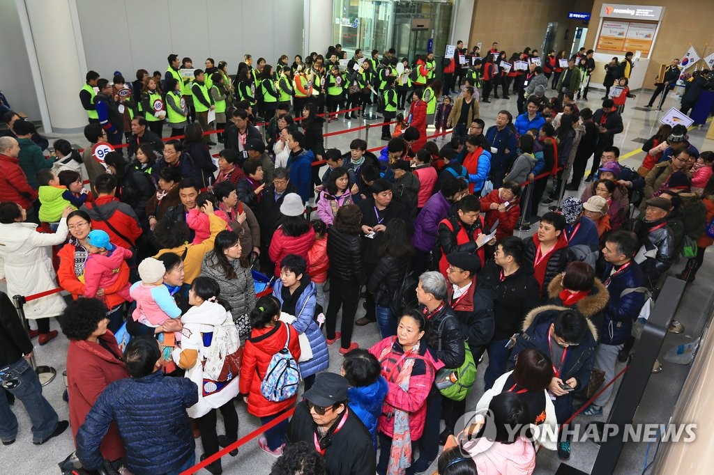 | ▲ 크루즈 타고 제주 찾은 유커들 (제주=연합뉴스) 크루즈 여객선 코스타 아틀란티카호 승객들이 지난 2016년 2월 8일 오전 제주항 국제여객선터미널에 도착해 준비된 차량으로 이동하기 전 가이드의 안내를 받고 있다.