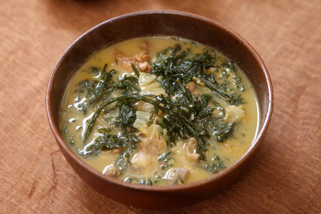 몸국은 돼지를 삶아낸 국물에 모자반과 배추, 무 등을 넣고 끓인 국이다.