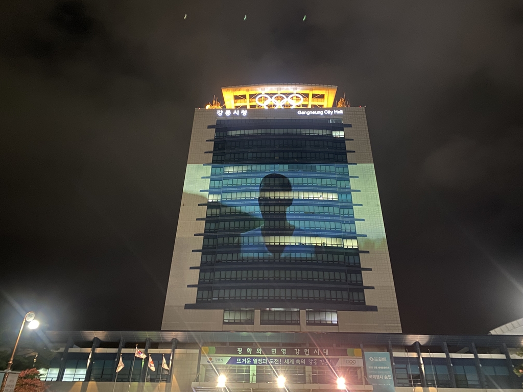 | ▲ 강릉시청사 대형 스크린 변신…19일 시범 상영 장면 [강릉시청 제공. 재판매 및 DB 금지] |