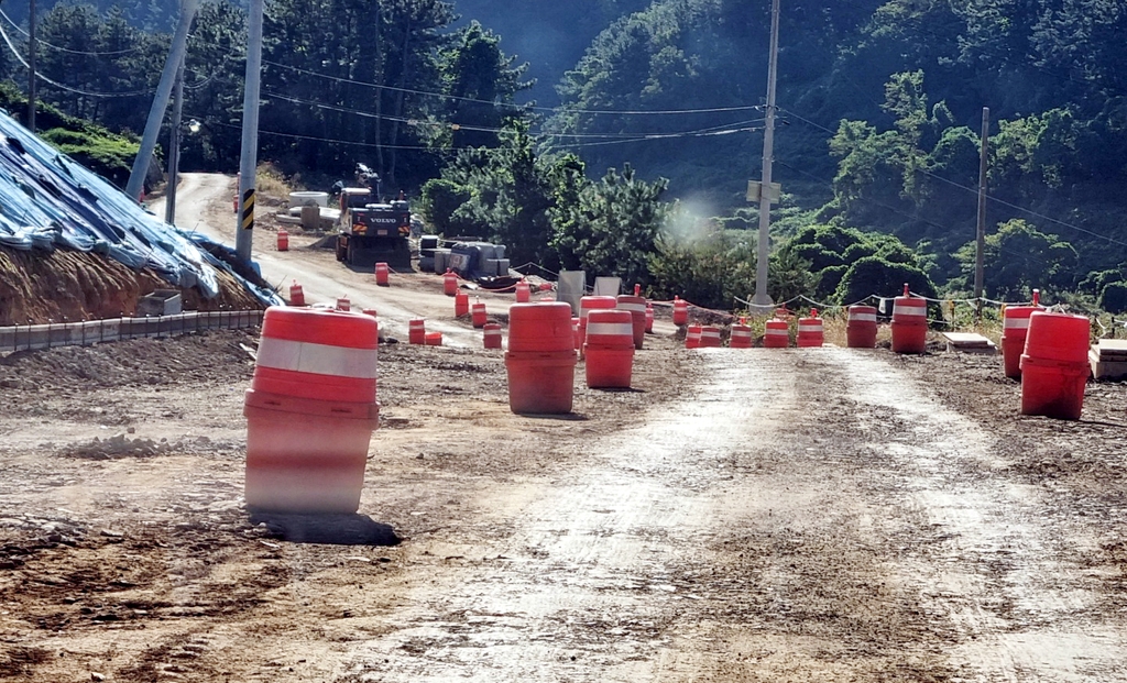 방문객들 통행 큰 불편, 토지보상 난항으로 내년 연말 완공 예정