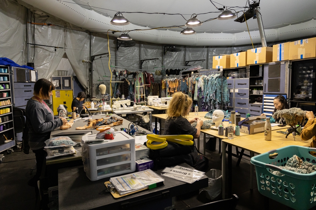 빌리지의 '아티스틱 텐트'는 의상실과 분장실, 연습 공간, 의무실 등이 합쳐진 커다란 백스테이지 공간이다. 이곳에서는 의상 담당자가 캐나다 몬트리올 본사에서 직접 제작한 무대 의상들을 관리한다. 96벌에 달하는 무대 의상은 모두 각각의 아티스트를 위해 맞춤 제작됐으며 한 벌을 만드는 데는 최대 50시간까지 걸린다.