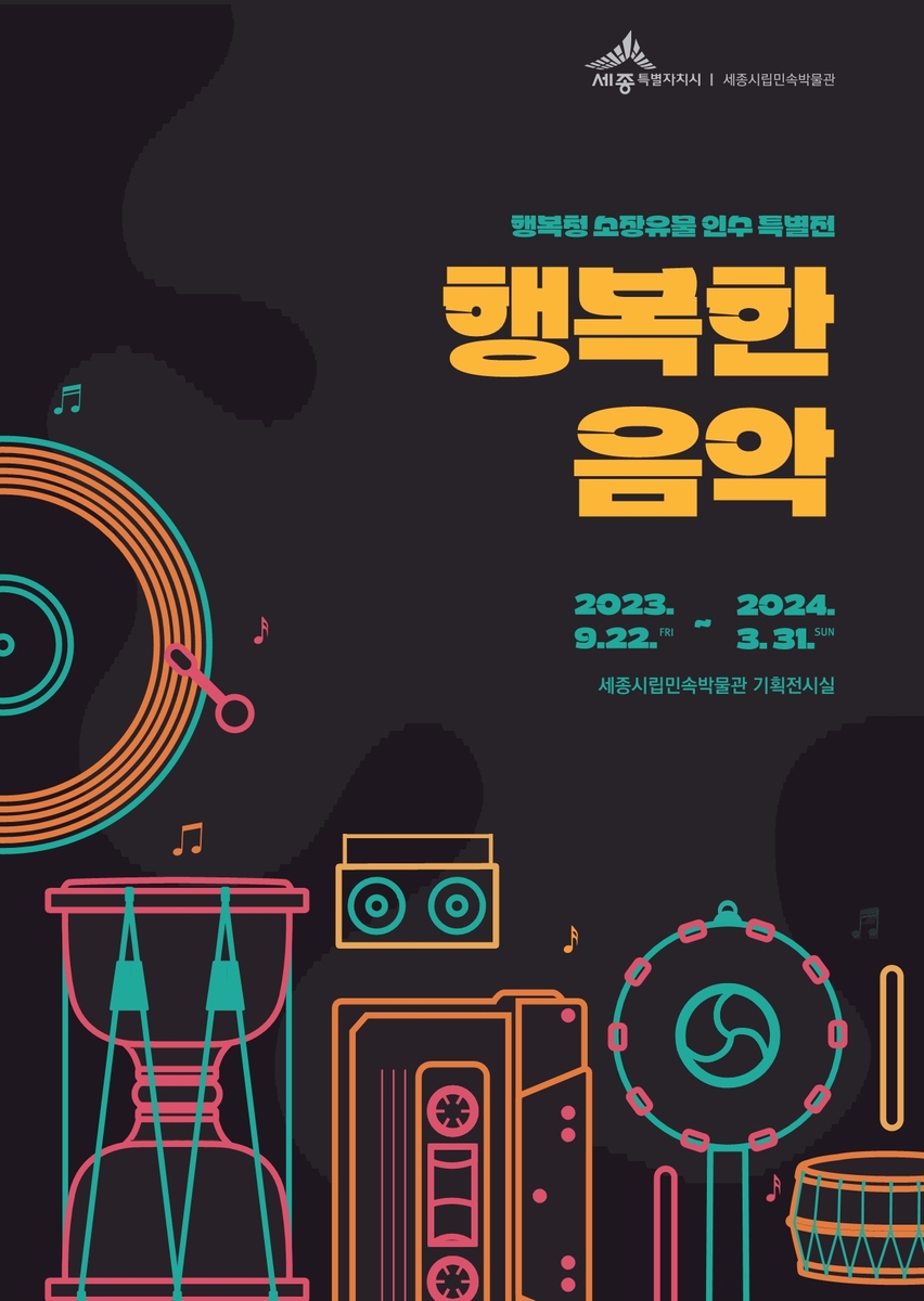 (세종=연합뉴스) 세종시는 오는 22일부터 내년 3월 31일까지 세종시립민속박물관에서 농악에서부터 LP판, 카세트테이프에 이르기까지 음악 소비 성향이 변화되는 과정을 조명한 특별전 '행복한 음악'을 개최한다고 21일 밝혔다.