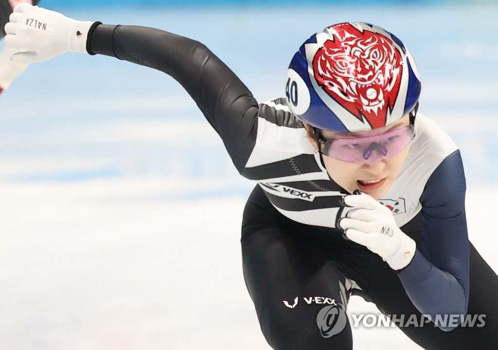 | ▲ Choi Min-jeong of South Korea competes in the final of the women's 3,000m short track speed skating relay at the Beijing Winter Olympics at Capital Indoor Stadium in Beijing on Feb. 13, 2022. (Yonhap) |