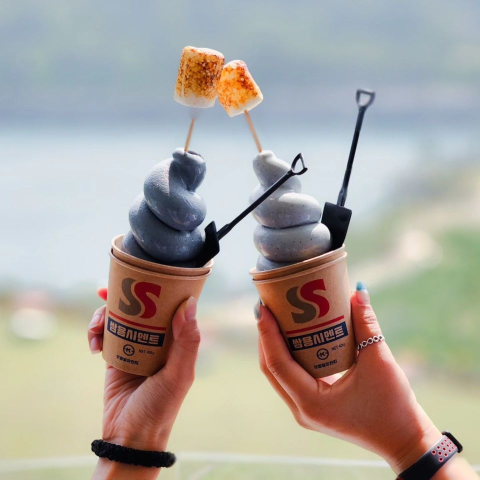 라벤더 축제가 열리고 있는 무릉별유천지에는 흑임자에 구운 마시멜로를 얹은 '시멘트 아이스크림'이 인기몰이 중이다.
