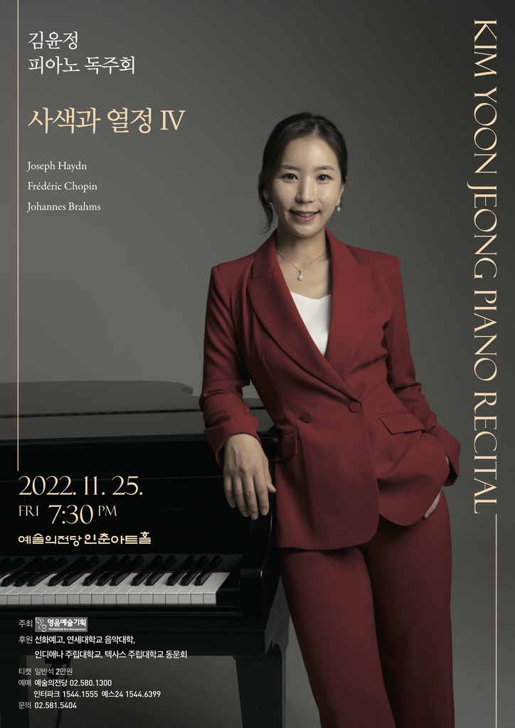 ▲ 김윤정 피아노 독주회 = 피아니스트 김윤정이 오는 25일 예술의전당 인춘아트홀에서 '사색과 열정 IV'라는 제목의 독주회를 연다.
