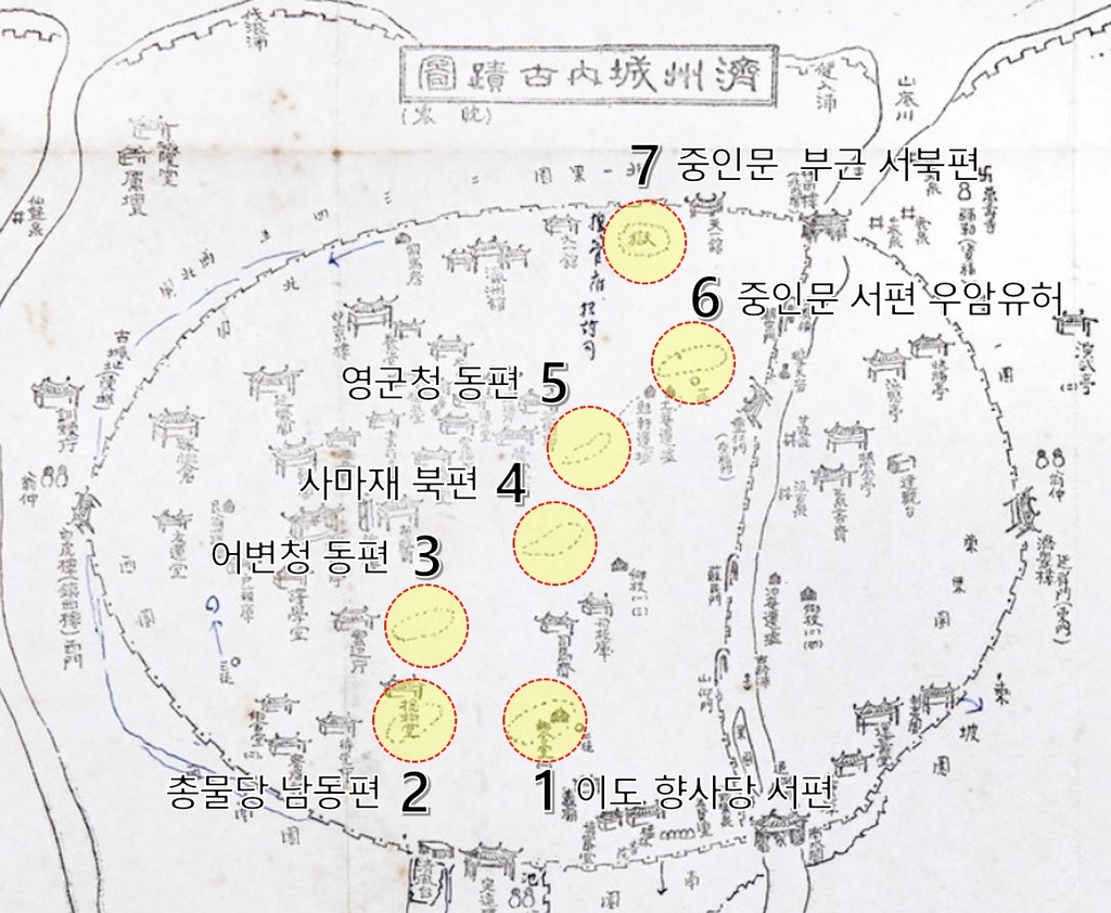 북두칠성 모양으로 제주 원도심 곳곳에 세워진 축대(築臺) '칠성대'의 위치는 어디쯤일까.