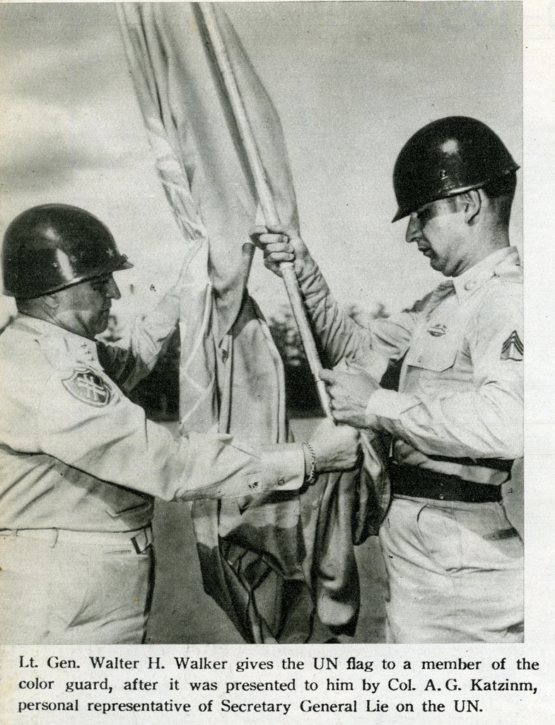 '초대 유엔군 사령관'이라는 타이틀을 얻게 된 맥아더 장군은 한국에 오기 직전인 1950년 7월 1일 일본에서 유엔기를 받아 한국으로 들어왔다.