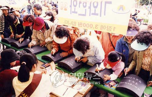 | ▲ 제주목관아 복원 위한 기와 헌납 운동 [연합뉴스 자료사진] |