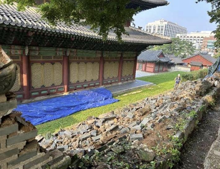 | ▲ 창덕궁 인정전 담장 피해 모습 [문화재청 제공. 재판매 및 DB 금지] |