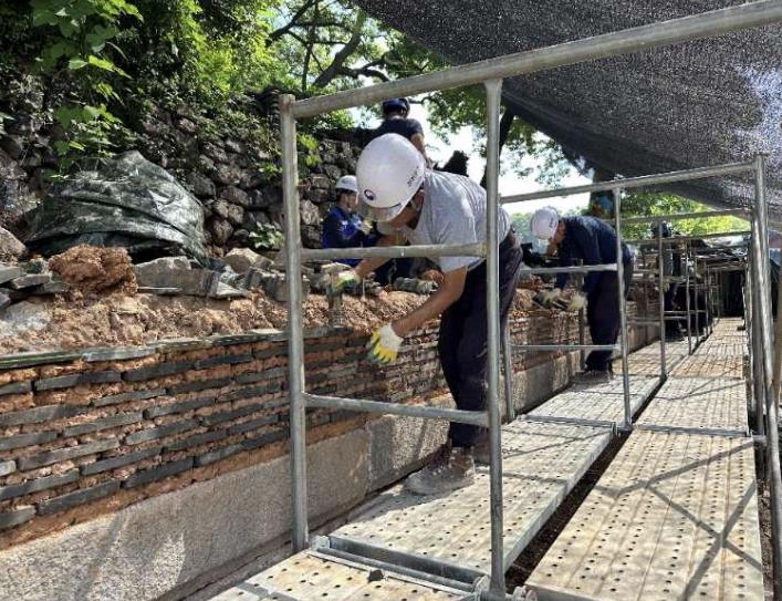 | ▲ 담장 보수 공사 모습 [문화재청 제공. 재판매 및 DB 금지] |