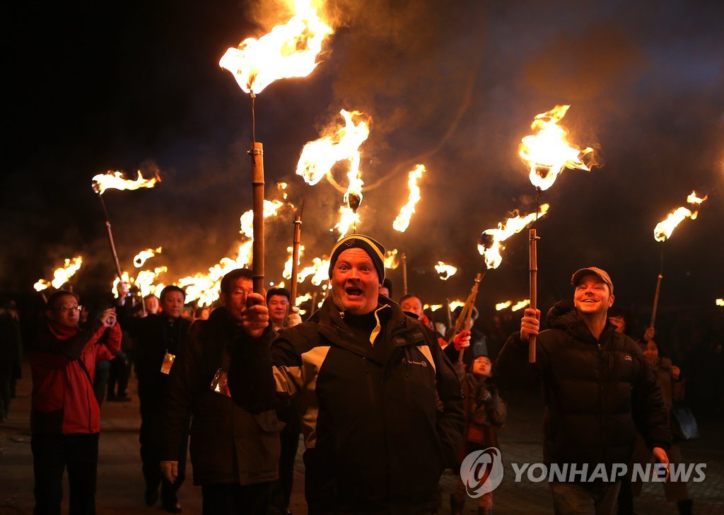 | ▲ 무사안녕 기원 횃불대행진 (제주=연합뉴스) 2015 제주들불축제가 열리는 제주시 애월읍 봉성리 새별오름에서 참가자들이 무사안녕을 기원하는 횃불대행진을 벌이고 있다. [연합뉴스 자료사진] |