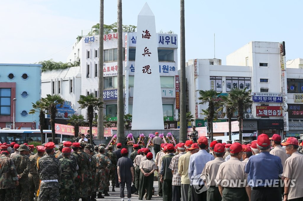 | ▲ '제주해병의 정신을 기리며' (제주=연합뉴스) 2015년 9월 1일 '제15회 제주해병대의 날'을 기념해 제주시 동문로터리 '해병혼탑'에서 참가자들이 나라를 위해 헌신한 해병들의 넋을 기리고 있다. [연합뉴스 자료사진] |
