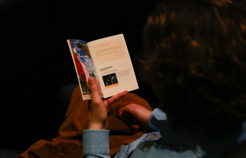 ▲ 홍상수 감독의 영화 '인트로덕션' 소개를 읽는 관객 [파리한국영화제 집행위원회 제공. 재판매 및 DB 금지]